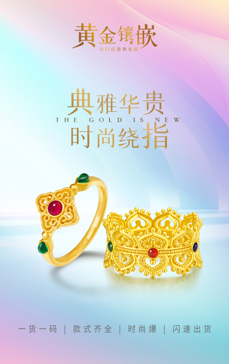 創(chuàng)新品類(lèi)———黃金黃,以嶄新工藝突破技術(shù)壁壘,煥新傳統(tǒng)18K金,為展現(xiàn)尊貴黃金色澤注入時(shí)尚新活力,永恒閃耀。